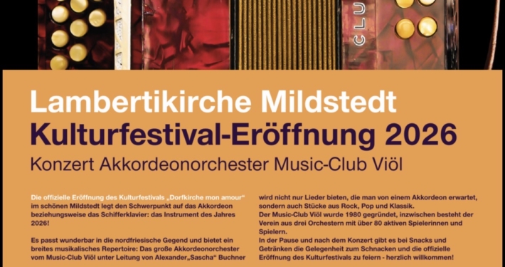 Kulturfestival-Eröffnung „Dorfkirche mon amour“ mit dem Akkordeonorchester Viöl am 10. Mai 16.00 Uhr