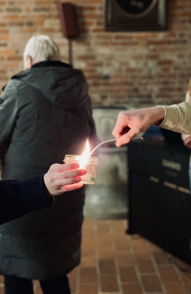 Bringen Sie zum Gottesdienst gern eine Laterne mit Kerze mit, damit das Licht aus Betlehem sicher zu Ihnen nach Hause kommt.