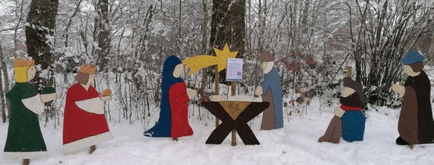 Wir laden Sie und Euch ein am Sonntag, den 28. Dezember um 14 Uhr in den Mildstedter Tannen, Startpunkt ist der Parkplatz gegenüber der Reithalle. Es erwartet Euch ein gemeinsamer Spaziergang für Jung und Alt entlang unserer Krippenfiguren. Mit Worten fürs Herz und die Seele und dem einen oder anderen Weihnachtslied.